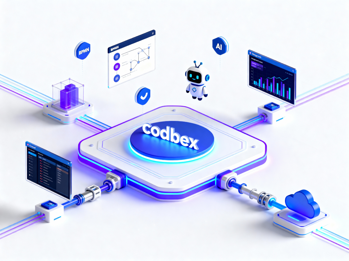 The codbex platform is a full-stack, open-source, cloud-native application and automation platform built for mission-critical enterprise workloads. It combines BPM, low-code development, integration, AI automation, and data processing into a single unified offering, eliminating the need for fragmented multi-product stacks.